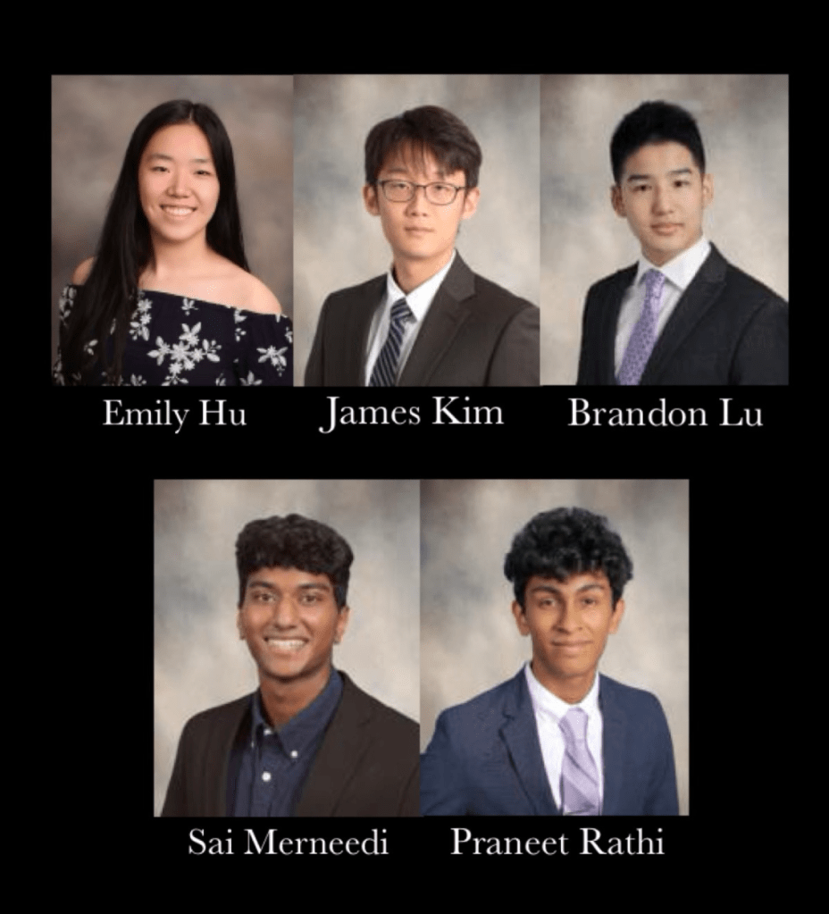 The Senior team of Andrew Liu, Greycen Ren, Joy Qu, Gabriel Visotsky and captain Spandan Goel totaled winnings over two years of $10,000 in scholarship money.